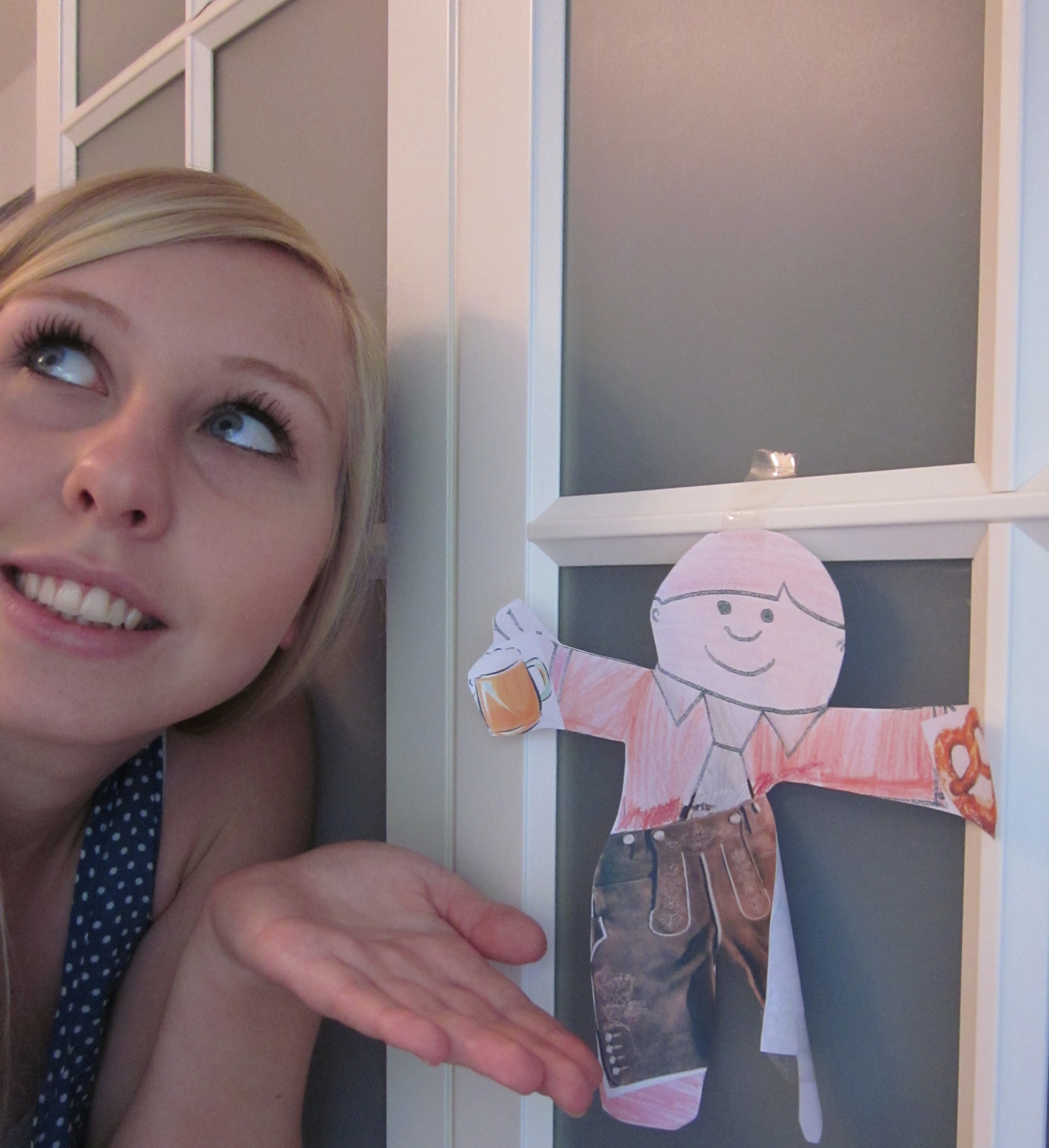“Flat Stanley meets a new friend, Carolin Koenig, while he is in the city of Augsburg, Bavaria, Germany! They share a brezel (“pretzel” in German) and a German beverage. ‘Guten Tag, everybody!’”