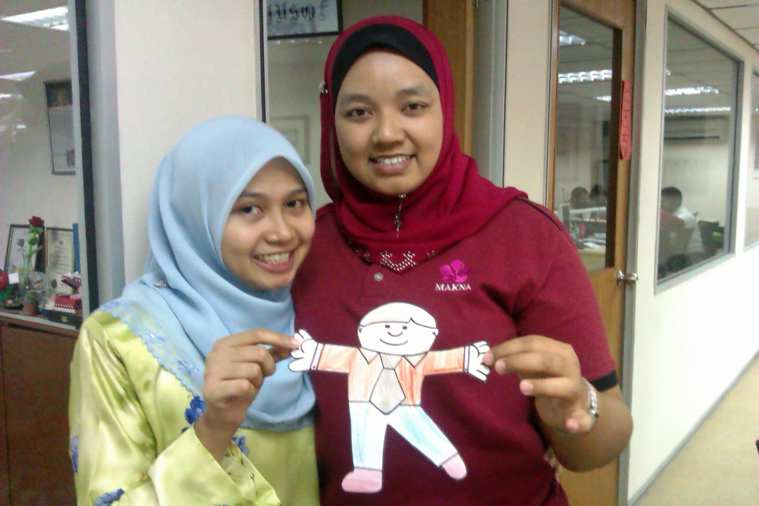 “Flat Stanley hangs out with Lela and Norli as they teach him ‘Saya-sayang kamu’ or ‘I love you’ in Bahasa Melayu, the official language in Malaysia.”