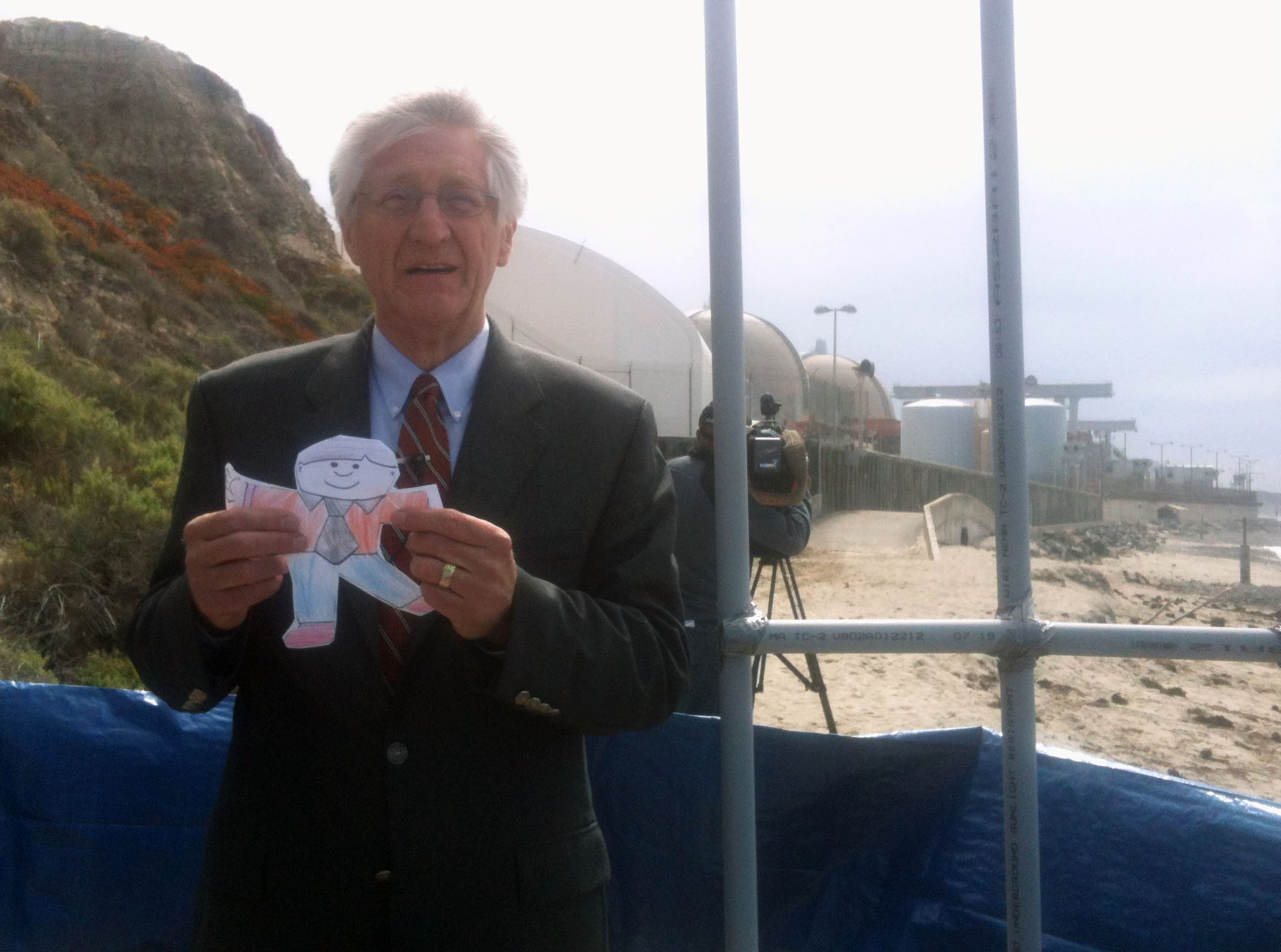 “Here’s Flat Stanley standing on the beach in front of the San Onofre Nuclear Power Station near San Clemente, CA with world-famous nuclear scientist Arnie Gundersen. Arnie spent some time showing Flat Stanley the science behind the plant.”