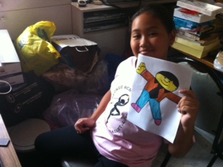 “April 26 – Flat stanley watching a movie on the laptop with ate Julia at the Halili-Cruz school of ballet. Location: Quezon City, Philippines”