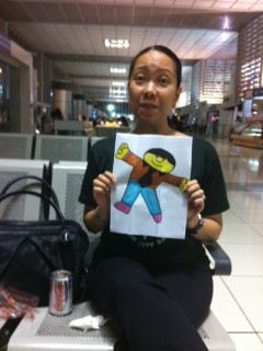 “Flat Stanley with teacher grace, waiting to board our flight to Cebu 🙂 Location: Ninoy Aquino International Airport, Terminal 2 Manila, Philippines”
